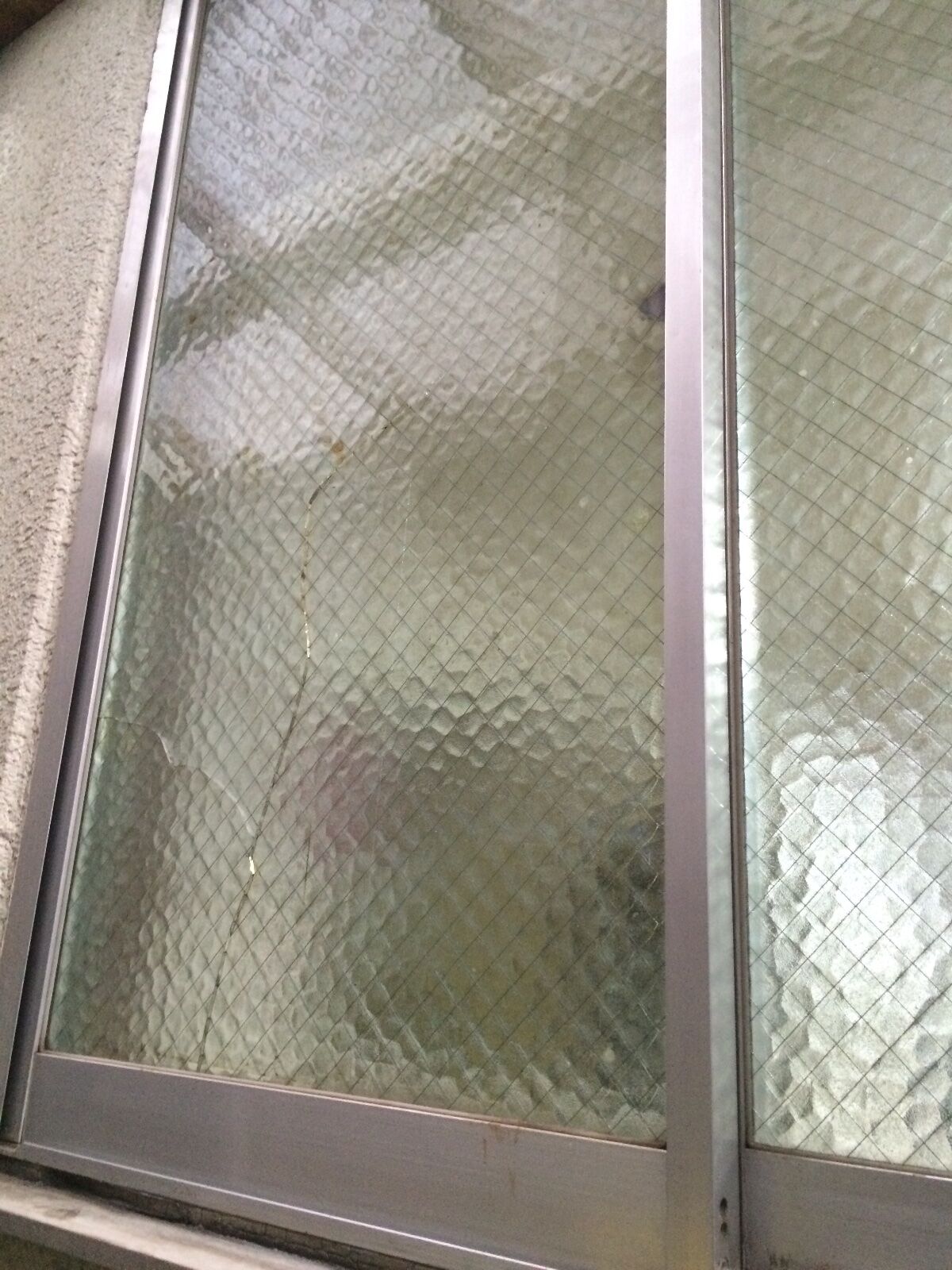 ヒビ割れた網入り型板ガラスの修理 大阪市淀川区S様